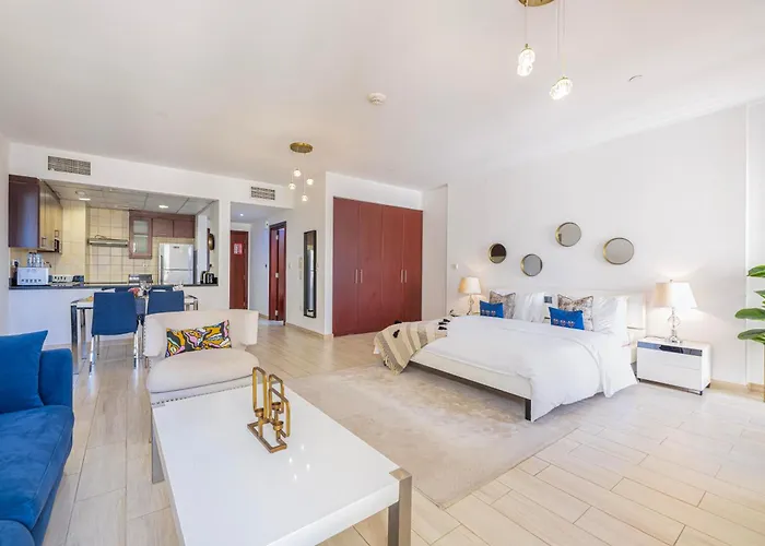 Das 66 m² große Apartment Sound Of The Waves In Jbr By Lagom Dubai liegt im Stadtteil Strand & Küste in einer 6 Gehminuten Entfernung vom The Walk at JBR. Ein privater Swimmingpool steht den Gästen zur Verfügung und sorgt für einen entspannten Aufenthalt.